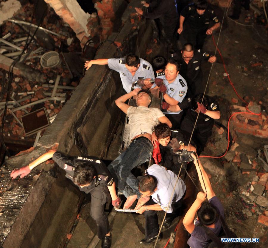 Fifty-one people were working in the factory building of a shoemaker in Wenling City when it collapsed at around 4 p.m. and 9 narrowly escaped. Rescuers saved 40 in the ruin and sent them to hospital.