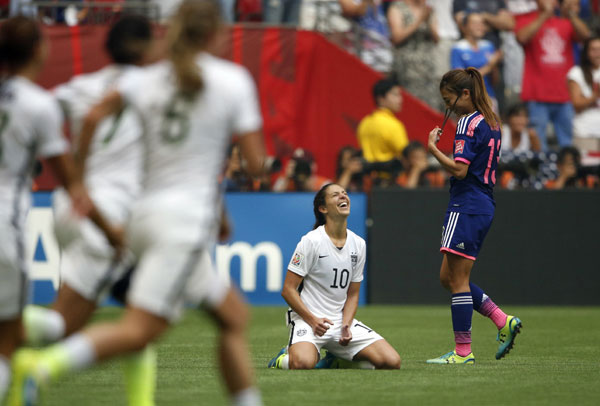 The United States celebrates after defeating Japan in the final of the FIFA 2015 Women's World Cup at BC Place Stadium, Vancouver, British Columbia, CAN, July 5, 2015. [Photo/Agencies]