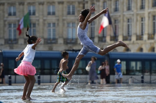 Children play near a pool in Bordeaux, France on June 30, 2015. (Photo/Xinhua)