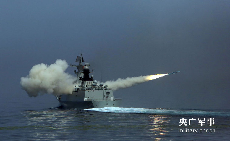 A tactical exercise is carried out by the Chinese Navy under simulated conditions of war in the Yellow Sea. Various types of missiles, torpedoes and artillery were fired during the drill. (Photo/ Wang Changsong)