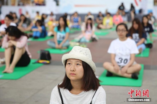 Eighty people of different age and with various jobs competed in Beijing to see who could space out the most on July 4, 2015. To win, contestants needed to look spaced out for two hours and refrain from making sudden or drastic movements. Using smart phones, chatting and listening to music are also prohibited during the contest. The first "Space-Out Competition" sponsored by a Korean artist Woops Yang in Seoul aims to show how important it is to take a break, clear one's mind, and space out. (CNS/Liu Guanguan)