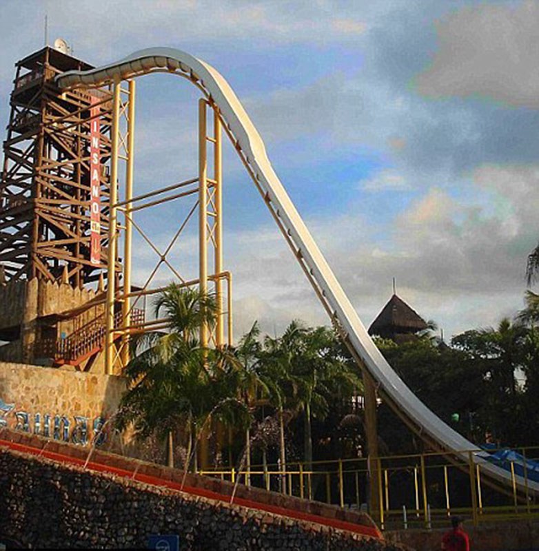 The water rides at Blizzard Beach Water Park in Orlando has a 37-meter-long steep slide, with 56 miles-per-hour speed, people are even able to see things during the ride.(Screenshot/Xinhuanet)