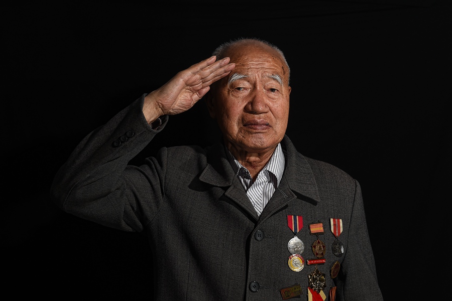 Fu Jinshan, 82, became a messenger when he was only thirteen. Later he joined in Chinese army and fought in the War of Resistance against Japan.On occasion of the 70th anniversary of the victory of the War of Chinese People's Resistance against Japanese Aggression, a Xinhua reporter takes photos of nine veterans’ salutes in Chengde, north China’s Hebei province. (Photo/Xinhua) |