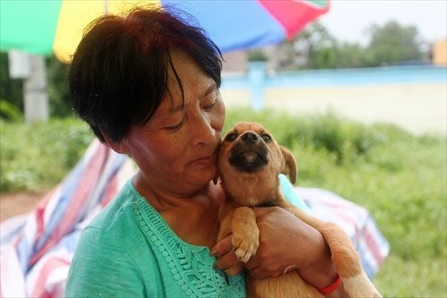 Yang Xiaoyun hugs a dog she has bought from a butcher. Photo: CuiMeng/GT
