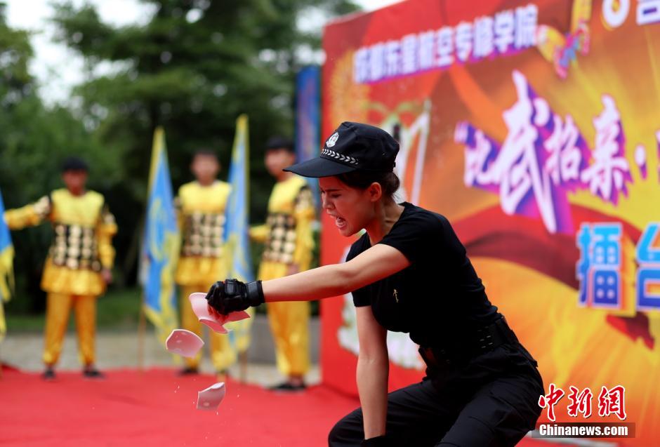 6 students majoring flight attendance holds a talent competition on campus to find their true love in southwest China's Chengdu on July 6, 2014. The six girls competed talents such as art martial, tea ceremony with the challengers. "We hold the competition to meet more friends, and to find a soul mate," said one of them. (Photo/Liu Zhongjun)