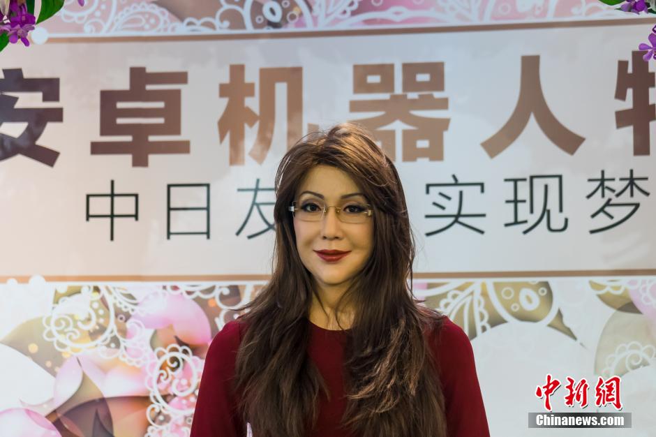 "Yang Yang", a humanoid robot with a variety of realistic expressions, appears in Shanghai on July 7, 2015. Yang, with smooth and delicate human-like skin, can"talk, shake hands and sing. She made debuts at the World Internet Conference in Beijing in May.(CNS Photo)