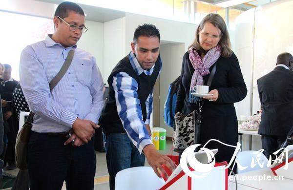 South Africans use Huawei tablets to experience the newly launched e-Libraries program. (Picutre: People’s Daily Online / Zhang Jiexian) |