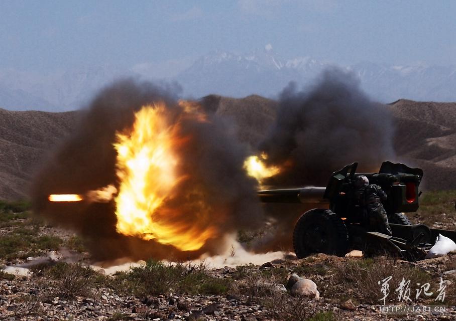 An PLA artillery regiment conducts a live fire drill in Tianshan mountains in Xinjiiang on July 2, 2015.(Photo/kj.81.cn)
