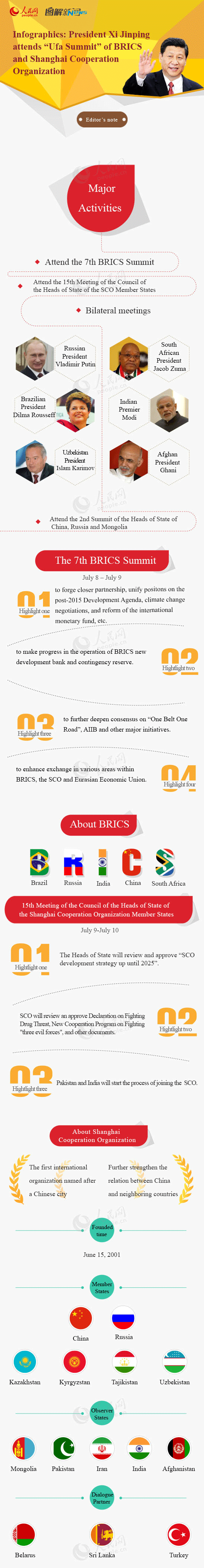 President Xi Jinping attends “Ufa Summit” of BRICS and Shanghai Cooperation Organization