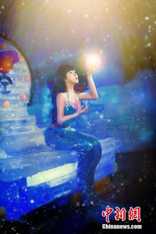 At the snow carnival being held at the scenic spot of Longhu Mountain, southeastern China's Jiangxi province, a sexy girl wears blue mermaid costume to attract visitors despite the temperature of minus 10 degrees Celsius. (CNS Photo)