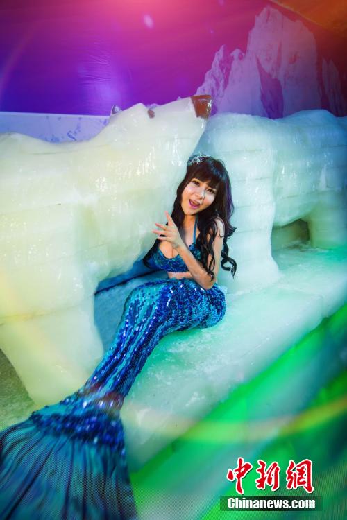 Girl wears sexy mermaid costume to attract visitors at snow carnival (6)