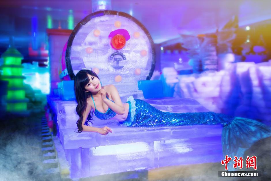 At the snow carnival being held at the scenic spot of Longhu Mountain, southeastern China's Jiangxi province, a sexy girl wears blue mermaid costume to attract visitors despite the temperature of minus 10 degrees Celsius. (CNS Photo)