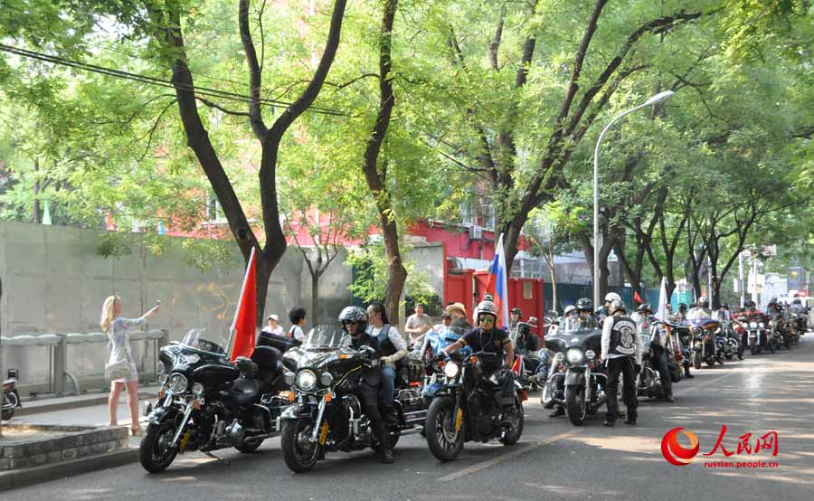To mark the 70th anniversary of the victory of WWII, a group consisting of 40 Chinese and Russian, 23 motorcycles and 5 cars left Beijing for Baikal in Russia. It will take the riders 18 days to complete the 3,500-kilometer journey. (People's Daily Online/Li Yan)