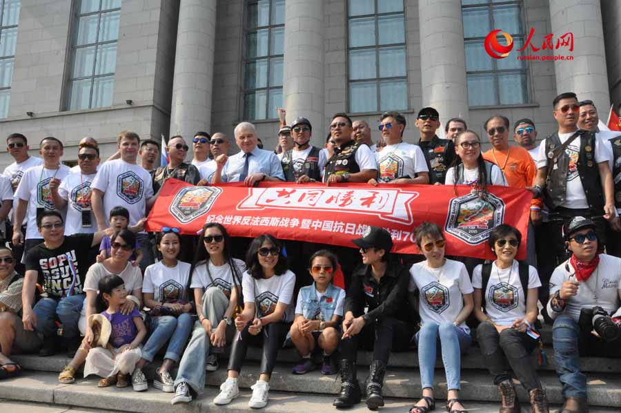 To mark the 70th anniversary of the victory of WWII, a group consisting of 40 Chinese and Russian, 23 motorcycles and 5 cars left Beijing for Baikal in Russia. It will take the riders 18 days to complete the 3,500-kilometer journey. (People's Daily Online/Li Yan)