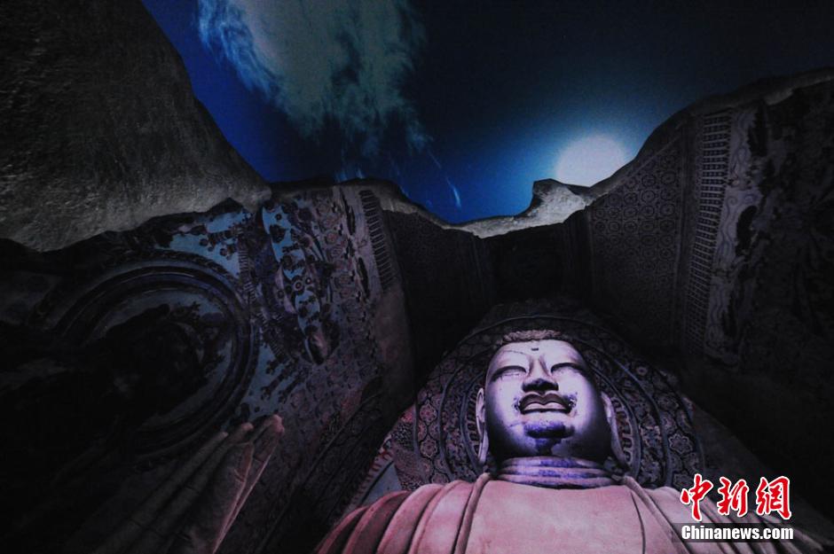 The Mogao Grottoes began to play “Incredible Buddhist Grottos” - a digital film with 180 degrees viewing angle - to tourist recently. The film is the world first UHD 8K digital full dome film themed grotto art. Tourists were all stunned by the fine images. (CNS/Yang Yanmin)