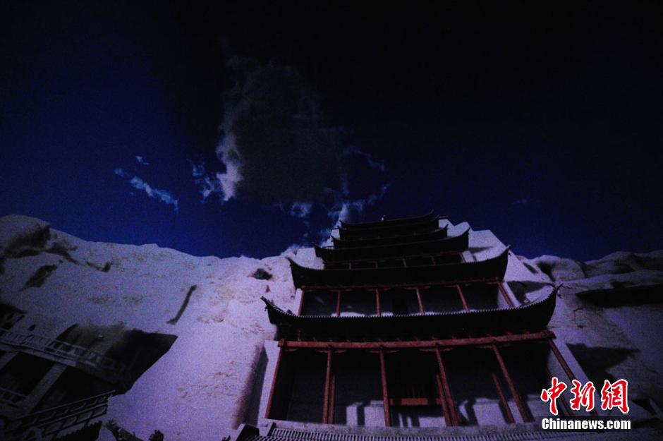 The Mogao Grottoes began to play “Incredible Buddhist Grottos” - a digital film with 180 degrees viewing angle - to tourist recently. The film is the world first UHD 8K digital full dome film themed grotto art. Tourists were all stunned by the fine images. (CNS/Yang Yanmin)