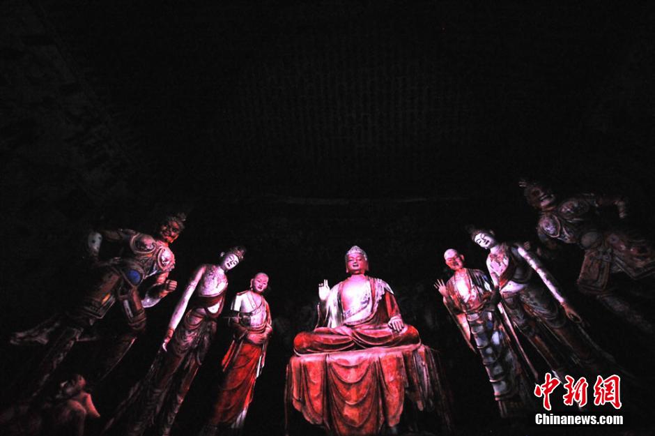 The Mogao Grottoes began to play “Incredible Buddhist Grottos” - a digital film with 180 degrees viewing angle - to tourist recently. The film is the world first UHD 8K digital full dome film themed grotto art. Tourists were all stunned by the fine images. (CNS/Yang Yanmin)