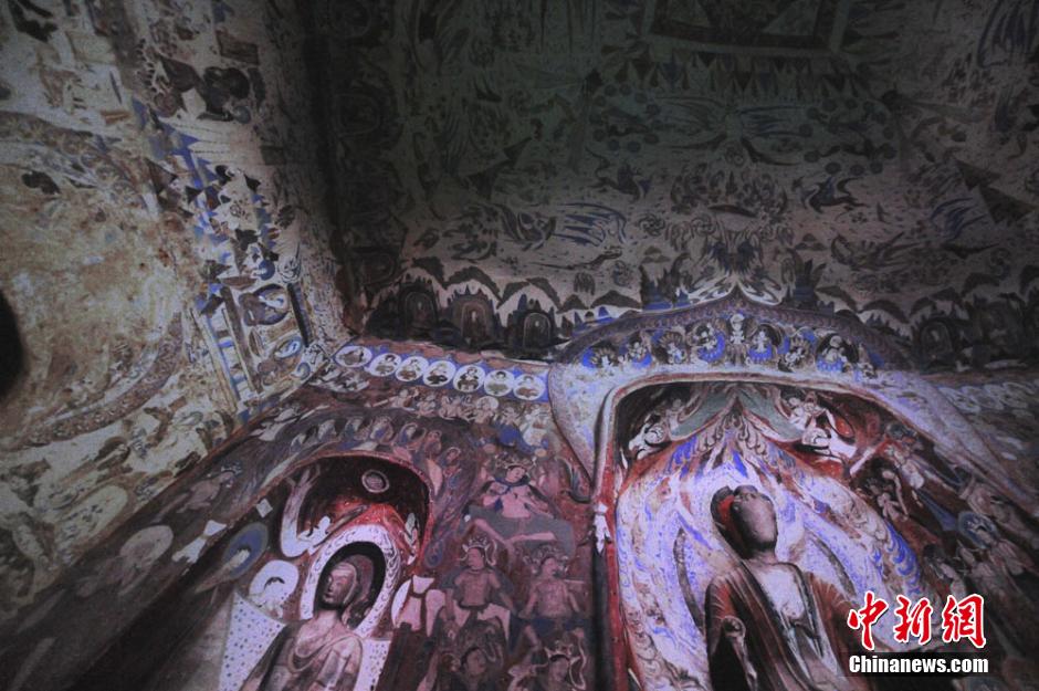 The Mogao Grottoes began to play “Incredible Buddhist Grottos” - a digital film with 180 degrees viewing angle - to tourist recently. The film is the world first UHD 8K digital full dome film themed grotto art. Tourists were all stunned by the fine images. (CNS/Yang Yanmin)