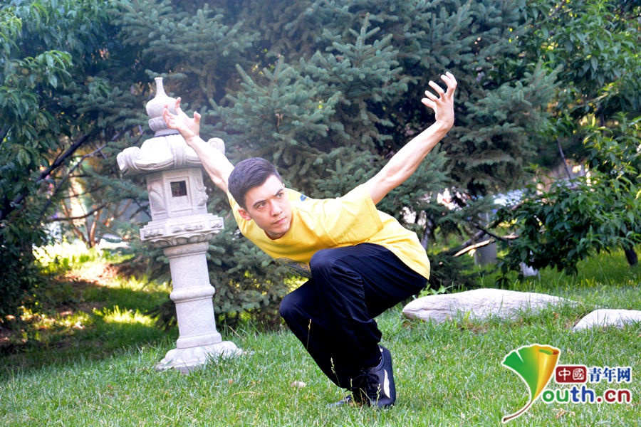 Felly, born in Germany, is a fan of Chinese Kung Fu. He now studies in Capital Institute of Physical Education to learn professional Chinese martial arts. (youth.cn/Guo Wenjing)