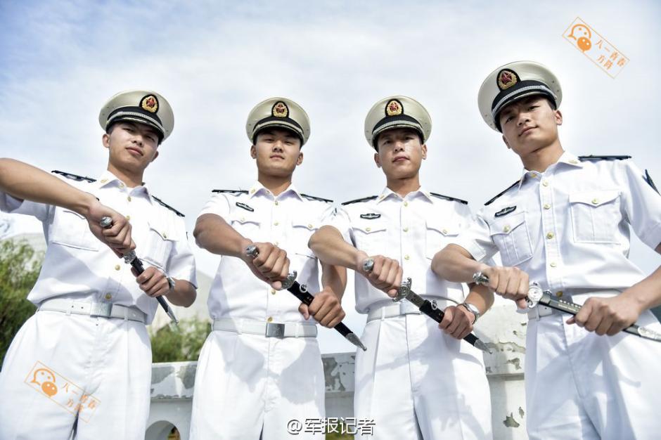 Dalian Naval Academy presents souvenir sabers to its graduates on June 9, 2015. The name and student number of each graduate are engraved on the blade. Representing honor and responsibility, the saber will be presented to graduates every year from now on. (Photo/Weibo of PLA Daily reporters) |