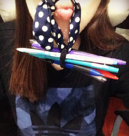 Hot on the Internet! How many pens can you hold with your lips? (9)