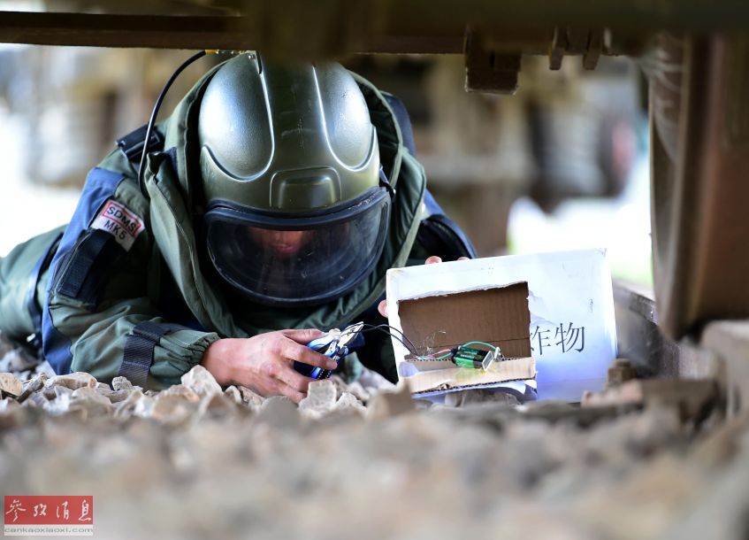 The 6th rescue team of Tianjin Armed Police Corps had an explosive search and removal drill, July 9, 2015.