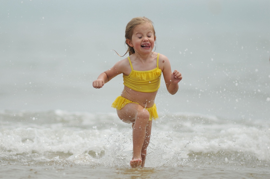 A little girl runs on the beach in Qingdao, Shandong province on July 3, 2015. (Xinhua/ Wang Haibin)