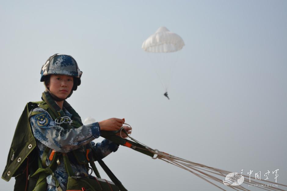 Photo shows the training scene of a group of Chinese female paratroopers. (Photo/81.cn)
