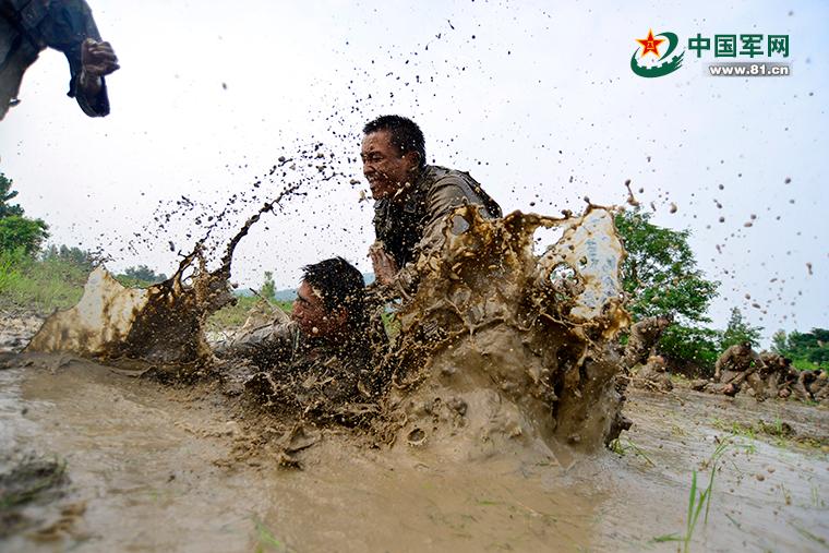 54 special operations soldiers from Jiangsu armed police corps attend a field comprehensive drill in Nanjing on July 8, 2015. They successfully completed a series of training subjects, such as 10 km long-range raid, rock climbing, rope descending and wading. (Photo/www.81.cn)