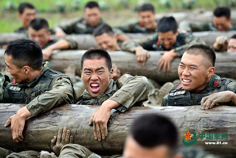 54 special operations soldiers from Jiangsu armed police corps attend a field comprehensive drill in Nanjing on July 8, 2015. They successfully completed a series of training subjects, such as 10 km long-range raid, rock climbing, rope descending and wading. (Photo/www.81.cn) |