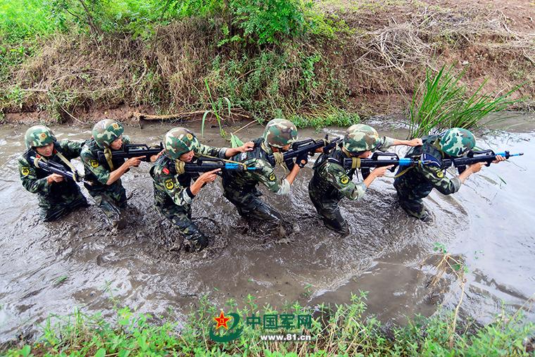 54 special operations soldiers from Jiangsu armed police corps attend a field comprehensive drill in Nanjing on July 8, 2015. They successfully completed a series of training subjects, such as 10 km long-range raid, rock climbing, rope descending and wading. (Photo/www.81.cn)