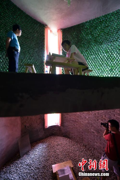 When everyone is busy with their job finding or preparation for graduate school, senior student Li Rongjun is working on his own business - a cabin made of 8,500 beer bottles. The cabin has two floors, and the upper floor is composed of green beer bottles. His neighbors came to visit the beer bottle cabin, and were all amazed by the spectacular feeling of staying inside this cabin. But Li still has a long way to go before his little "business" starts running. Besides innovation, cooperation with companies with professional promotional skills to make the cabin more appealing to the market is key to his success.(Chinanews/Zeng Wei)