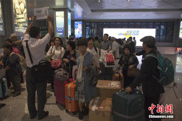 A delegation consisting of more than 50 Japanese war orphans arrived at Harbin Railway Station in Harbin, capital of northeast China's Heilongjiang province on July 11. The delegation will visit their adoptive Chinese families during the WWII. Holding flowers, the Chinese families had been waiting to welcome their "Japanese children" at the station for a long time. When the delegation walked out of the platform, they hug tightly with their Chinese families.