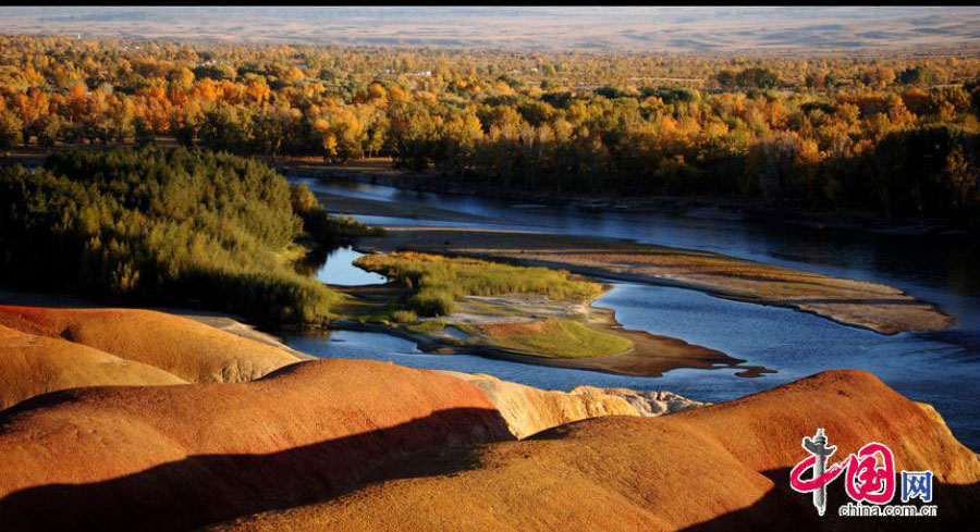 Located in Burqin County of Northwest China's Xinjiang Uygur Autonomous Region, Wucaitan, or Rainbow Beach, is a sightseeing spot known for its unique landforms created by years of wind and water erosion. Featuring blue sky, colorful beach and clear water, Wucaitan is one of the most famous attractions in Xinjiang. (Photo/China.org.cn)
