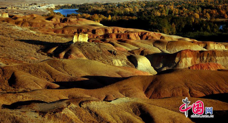 Located in Burqin County of Northwest China's Xinjiang Uygur Autonomous Region, Wucaitan, or Rainbow Beach, is a sightseeing spot known for its unique landforms created by years of wind and water erosion. Featuring blue sky, colorful beach and clear water, Wucaitan is one of the most famous attractions in Xinjiang. (Photo/China.org.cn)