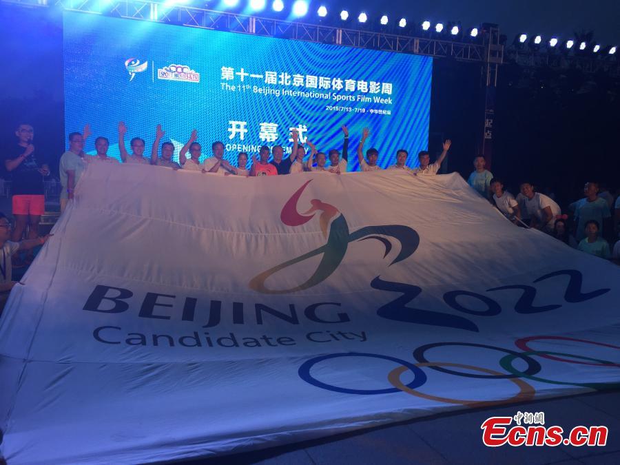 Participants celebrate during the opening ceremony of the Beijing International Sports Film Week in Beijing, July 13, 2105. China's ultra-marathon runner Chen Penbin, who has completed 100 marathons in 100 consecutive days, joined 300 participants in a nighttime running event to support Beijing’s bid to host the 2022 Winter Olympics. (Photo: China News Service/Zeng Ding) |