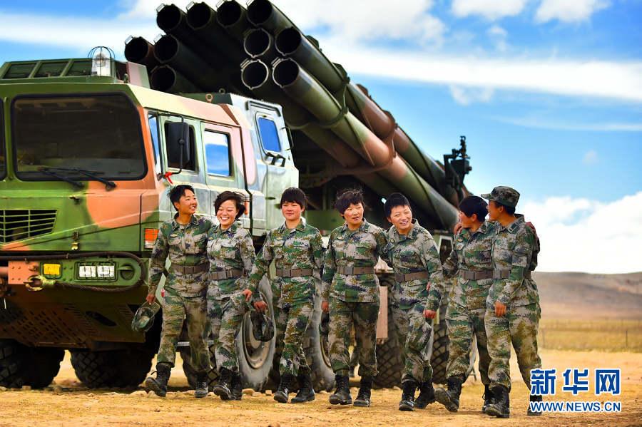 Photo shows female PLA soldiers in a long-range rocket launcher live-fire exercises on the Qinghai-Tibet Plateau. An artillery detachment under the Tibet Military District of the Chinese People's Liberation Army (PLA) conducted live-fire exercises recently. (Photo/Xinhua)