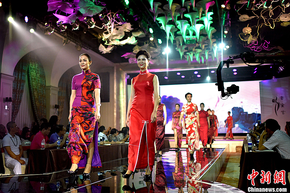 China's first collection of poems Women Wearing Cheongsam was released in Beijing recently. Models in various cheongsams shine at the launching ceremony. (CNS Photo)