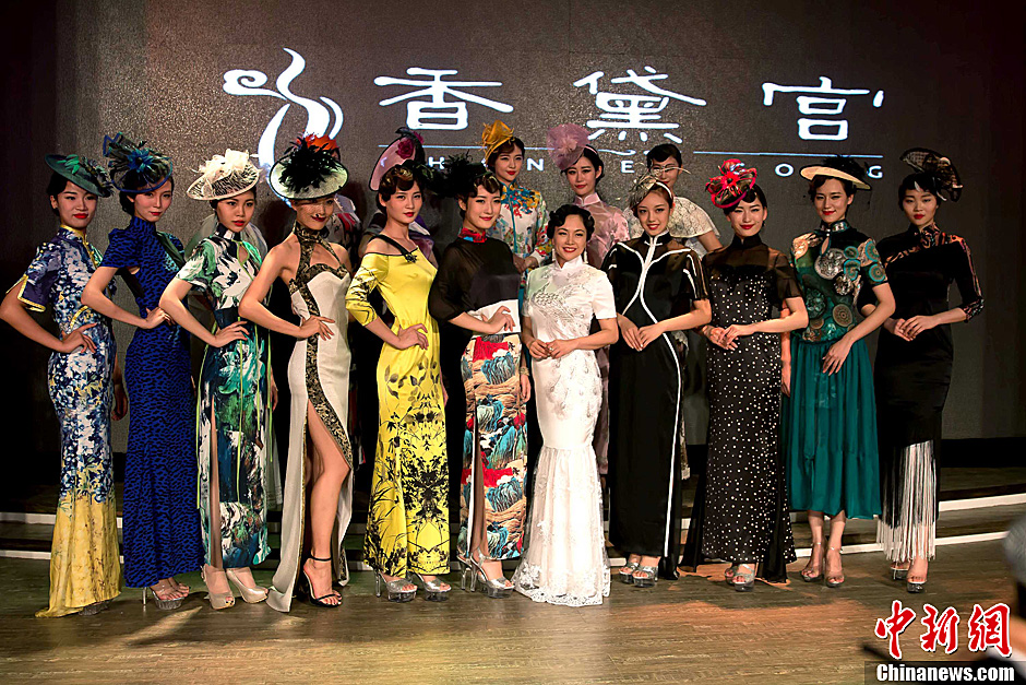 China's first collection of poems Women Wearing Cheongsam was released in Beijing recently. Models in various cheongsams shine at the launching ceremony. (CNS Photo)