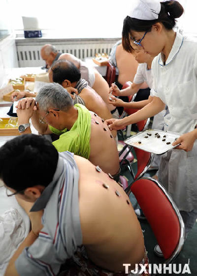 Patients are receiving the Sanfutie. [Photo/Xinhua]
