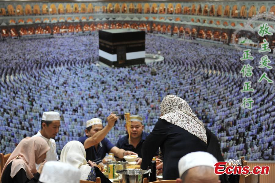 Muslims have Iftar, the evening meal where Muslims end their daily Ramadan fast, in Kunming city, capital of Southwest China’s Yunnan province, July 13, 2015. Laylat Al Qadr is considered the holiest night of the year for Muslims and is celebrated during Ramadan, the month of fasting for Muslims. It is known as the "Night of Power". Muslims observe the occasion with study, devotional readings, and prayer, as the night's holiness is believed to make it a very good time for prayers to be answered. (Photo: China News Service/Ren Dong) |