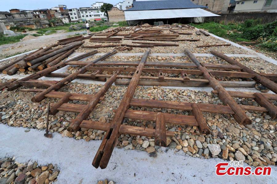 Workers reassemble a historic house donated by Hong Kong action film superstar Jackie Chan in Changting county, East China’s Fujian province, July 14, 2015.