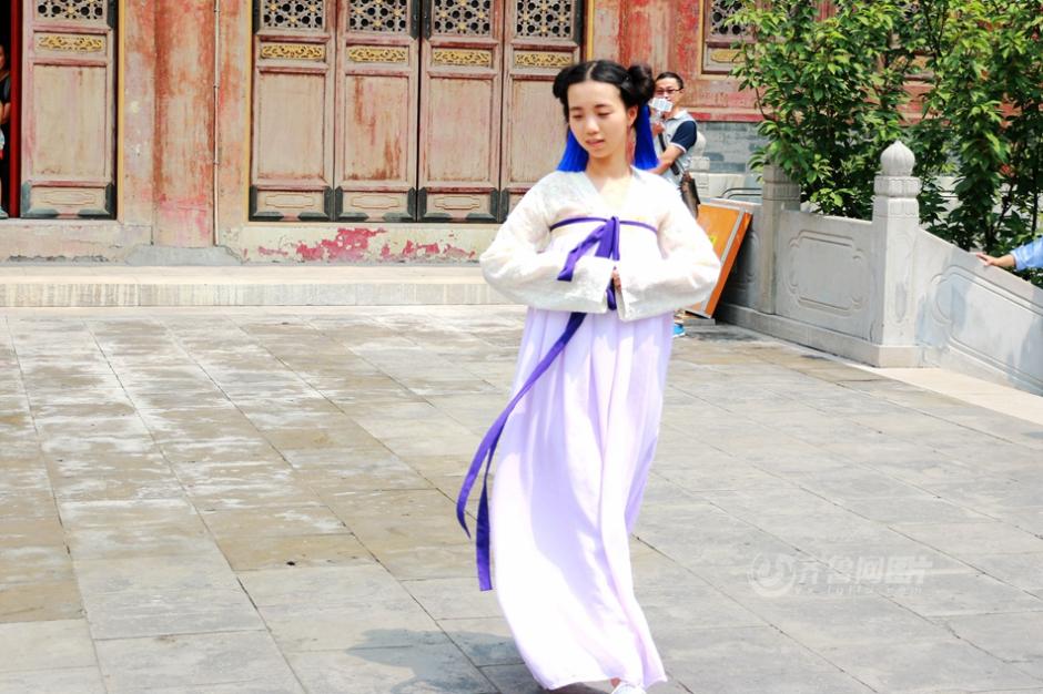 High school students in Hanfu clothing perform in a talent show in Confucian Temple on July 12, 2015 in Jinan, Shandong province.