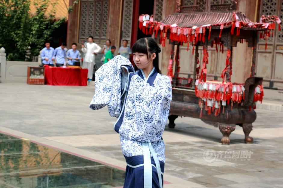High school students in Hanfu clothing perform in a talent show in Confucian Temple on July 12, 2015 in Jinan, Shandong province.