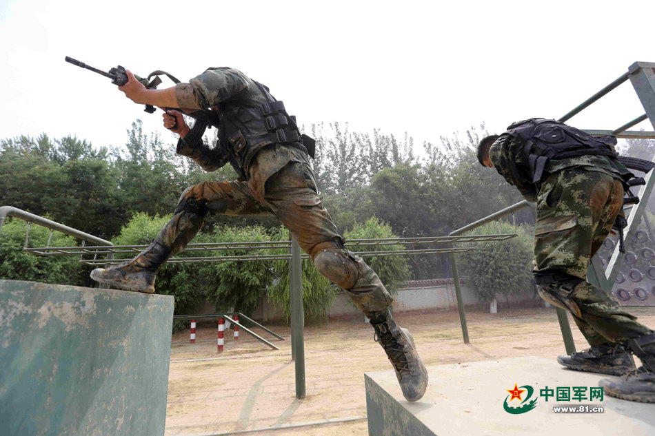 One hundred Chinese special commandos are in devil training in a training base of Beijing Armed Police Corps on July 10, 2015. (81.cn/Li Guangyin)
