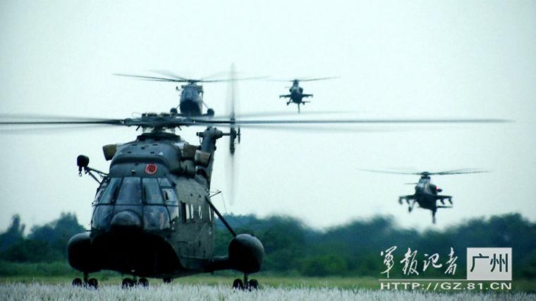 An army aviation brigade of Guangzhou Military Region conducts a day and night flight training for the Z-10 attack helicopter formation in late June. (Photo/gz.81.cn)