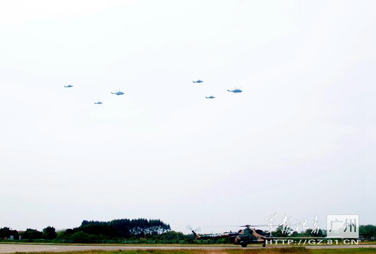 | An army aviation brigade of Guangzhou Military Region conducts a day and night flight training for the Z-10 attack helicopter formation in late June. (Photo/gz.81.cn) |