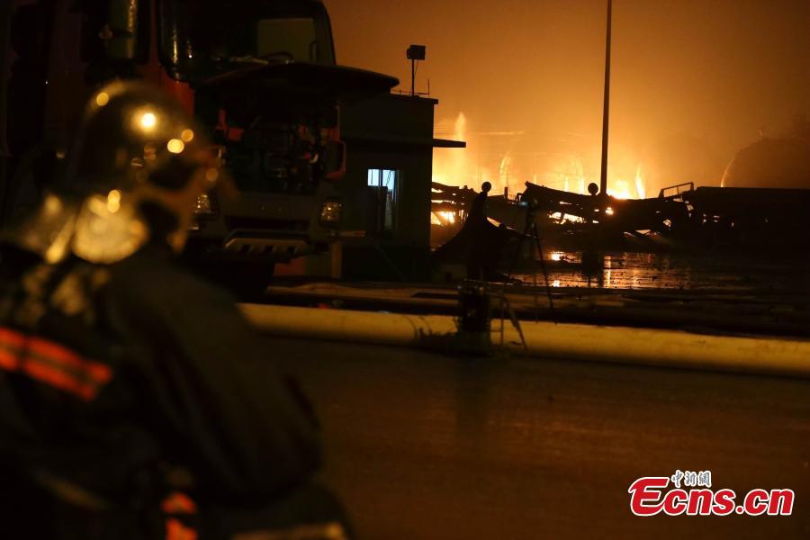 The blaze broke out at around 7:40 a.m. as tanks containing liquefied hydrocarbon leaked at the plant in the city of Rizhao.
