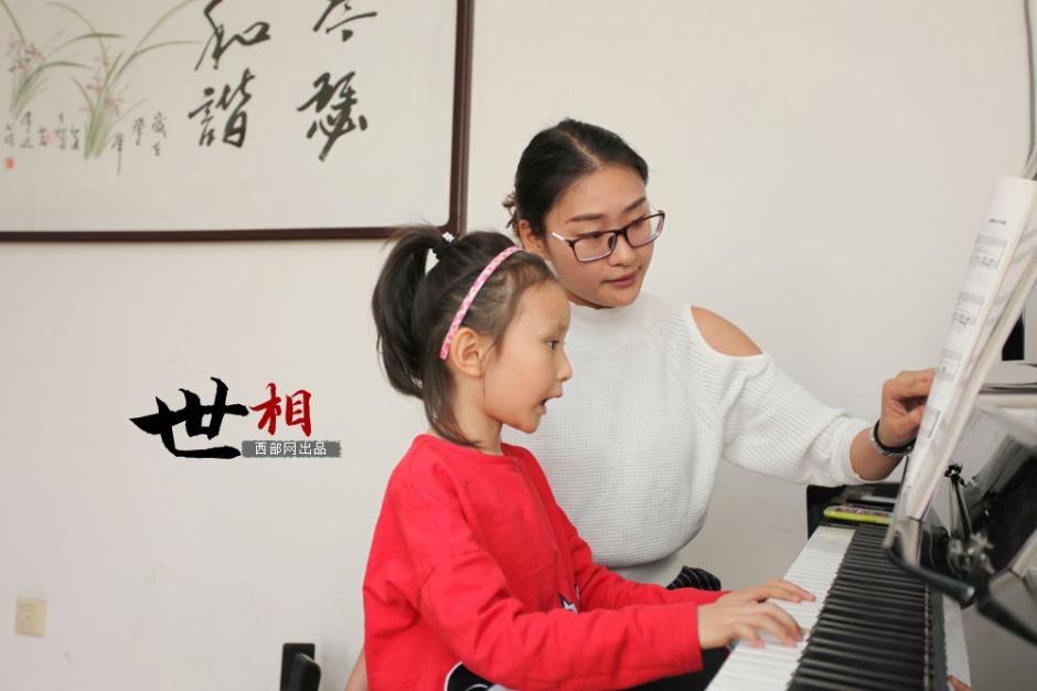 Zhang Wenjin teaches a student to play piano in her music training center. (cnwest.com/Wei Yongxian)