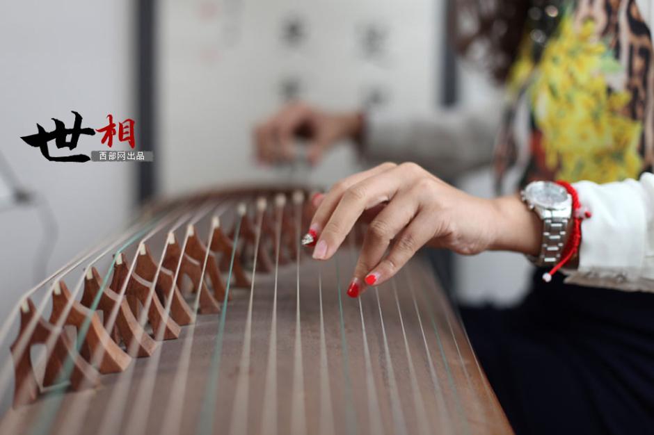 Zhang Wenjin plays guzheng in her music training center. (cnwest.com/Wei Yongxian)